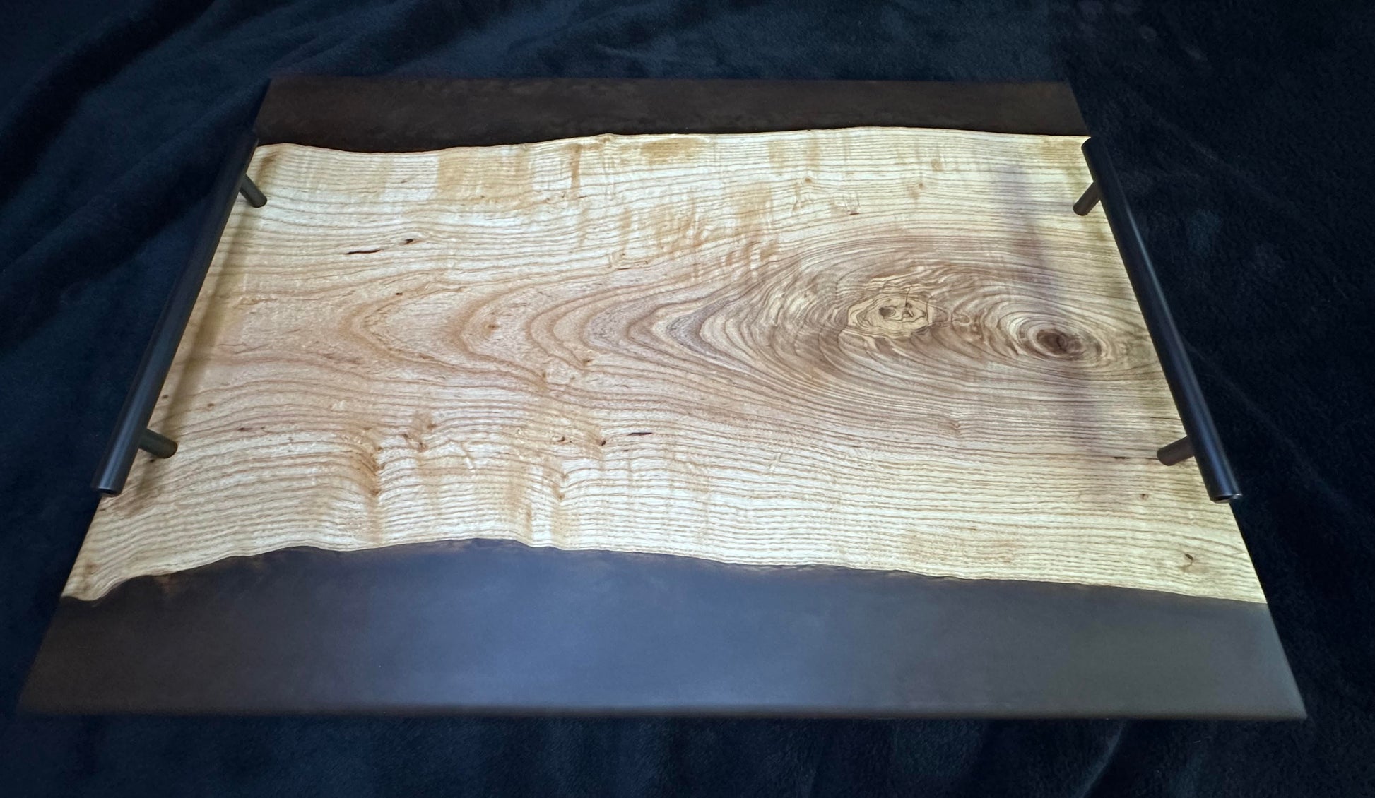 Crafted from solid Ash Wood XL Charcuterie Board with Oil Brushed Bronze Handles and a Bronze Coffee Epoxy.