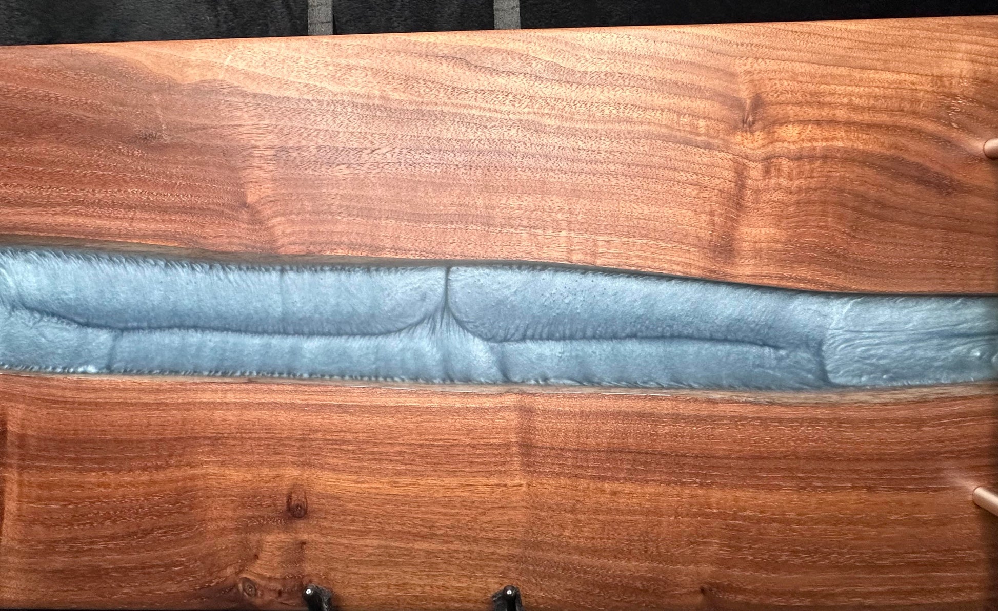 The river isn’t perfectly straight — it meanders, folds, and feathers into the walnut grain, creating a one-of-a-kind visual you won’t ever replicate. That’s not a flaw. That’s the signature.